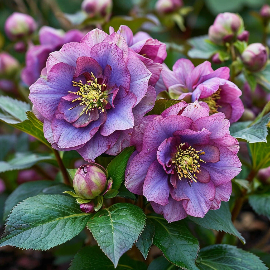 Морозник «Айс Принцесс Чарм» — это воплощение зимней грации и элегантности. Его нежные цветки с завораживающим фиолетовым оттенком и лёгкой синевой, словно покрытые тонкой корочкой инея, создают атмосферу зимней сказки и наполняют сад волшебством. Представьте, как эти прекрасные цветы будут смотреться на фоне заснеженного ландшафта, радуя глаз и даря ощущение гармонии и покоя.